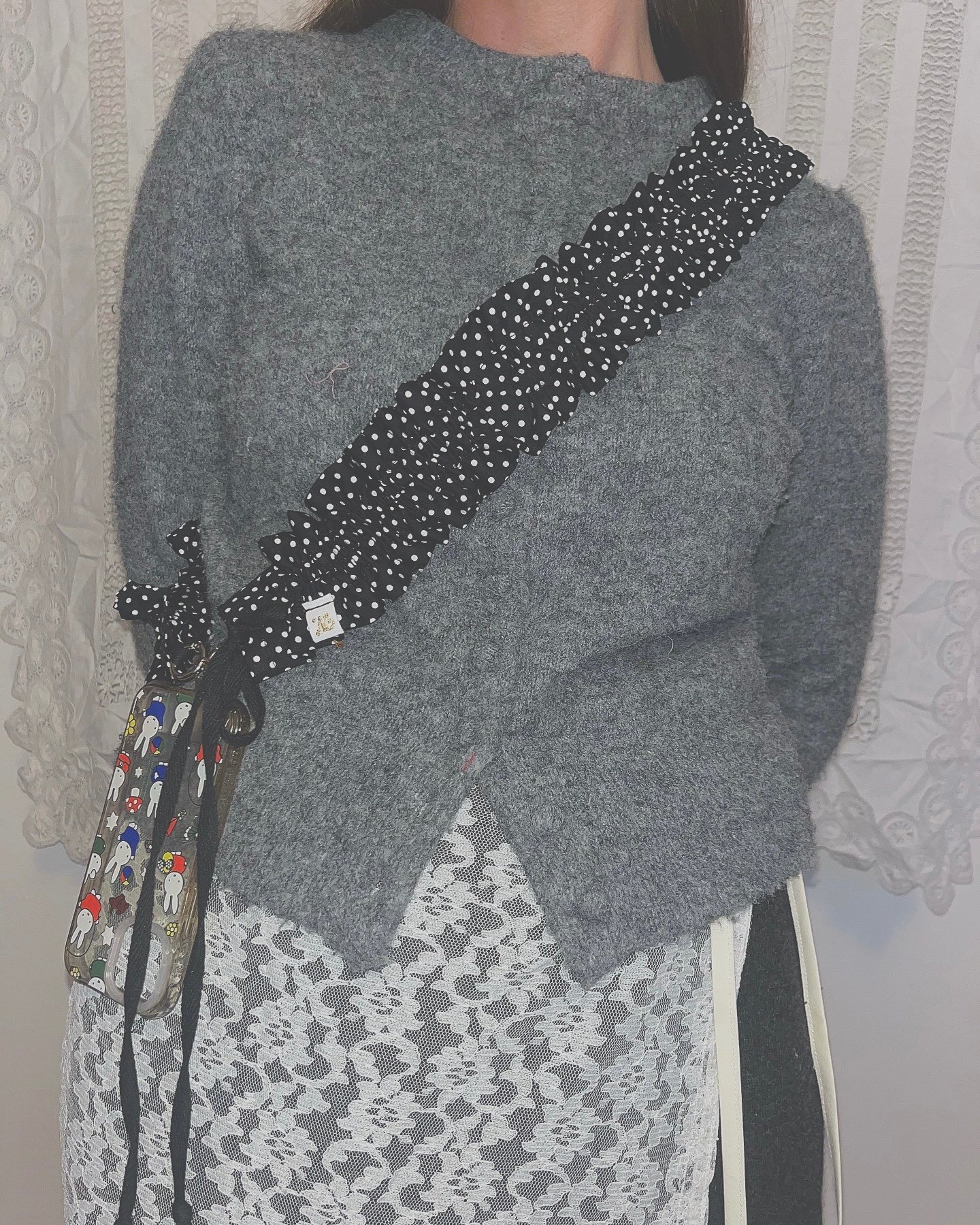 A bigger ruffle, a bolder statement in the cutest polka dots. Adjustable from 100–150cm, this extra-large version of our signature strap is made for maximum versatility. Whether you're slinging it on your phone, bag, or water bottle, the sturdy round clasps make it easy to clip on and go.